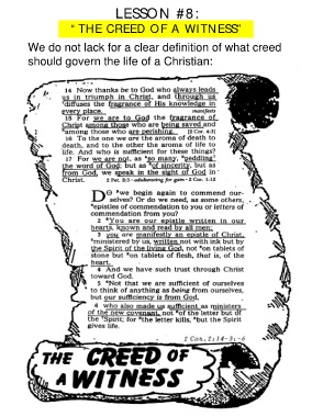 LESSON #8: “THE CREED OF A WITNESS” We do not lack for a clear definition of what creed should govern the life of a Christian: