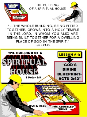 THE BUILDING OF A SPIRITUAL HOUSE Acts 2:42 “…THE WHOLE BUILDING, BEING FITTED TOGETHER, GROWS INTO A HOLY TEMPLE IN THE LORD, IN WHOM YOU ALSO ARE BEING BUILT TOGETHER FOR A DWELLING PLACE OF GOD IN THE SPIRIT.” Eph 2:21-22