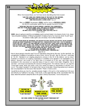 believer. Salvation first comes to the spirit, then it is worked out in the soul, and finally will be